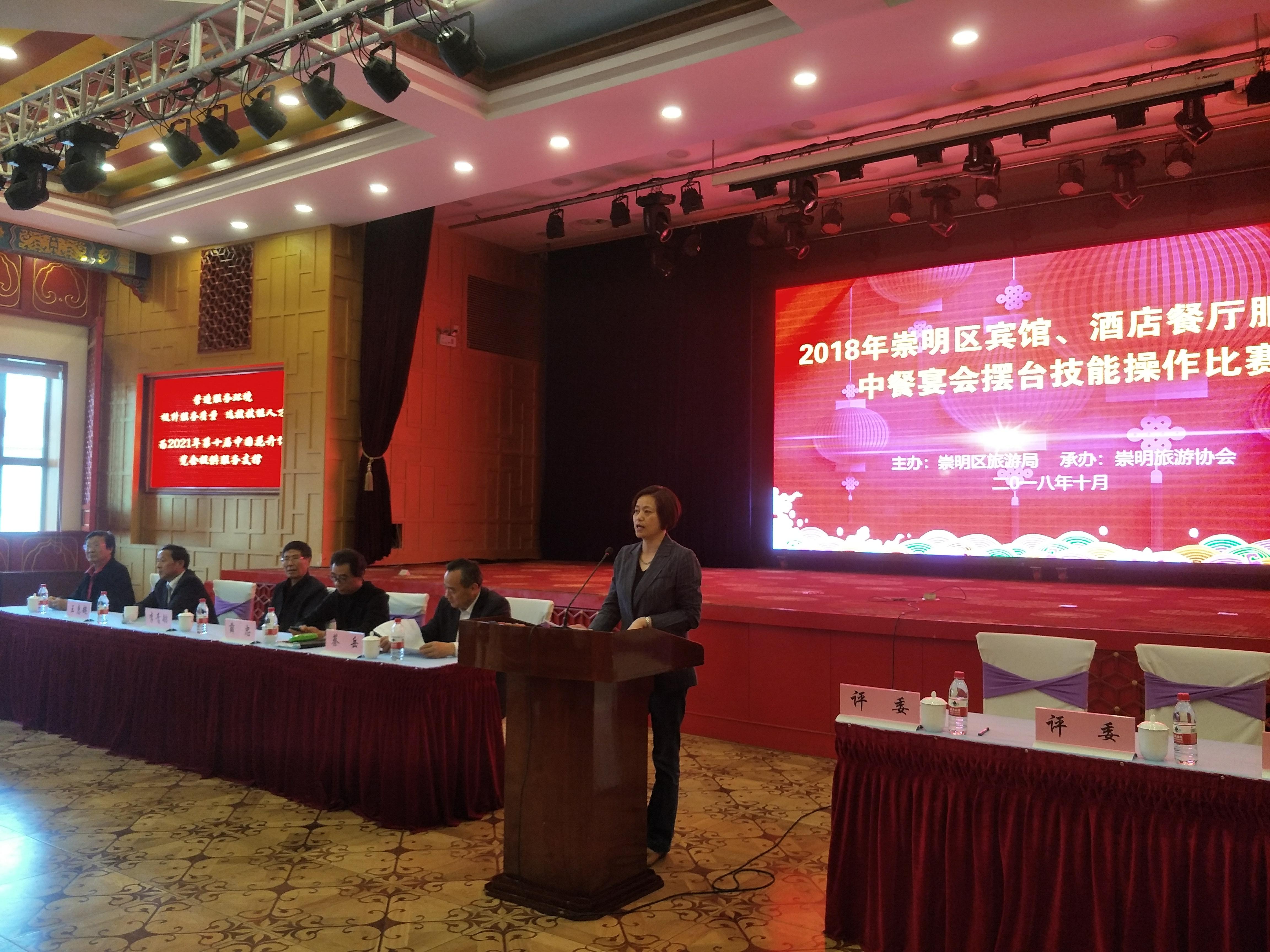 2018年10月18日,由崇明区旅游局主办、崇明旅游协会承办的2018年崇明区宾馆、酒店餐厅服务员中餐宴会摆台技能操作比赛在锦绣宾馆会议中心拉开帷幕。举办技能操作比赛旨在进一步提升区域内各宾馆、酒店餐厅服务员的服务水准,营造技能成长的良好环境,展示崇明旅游窗口形象。
