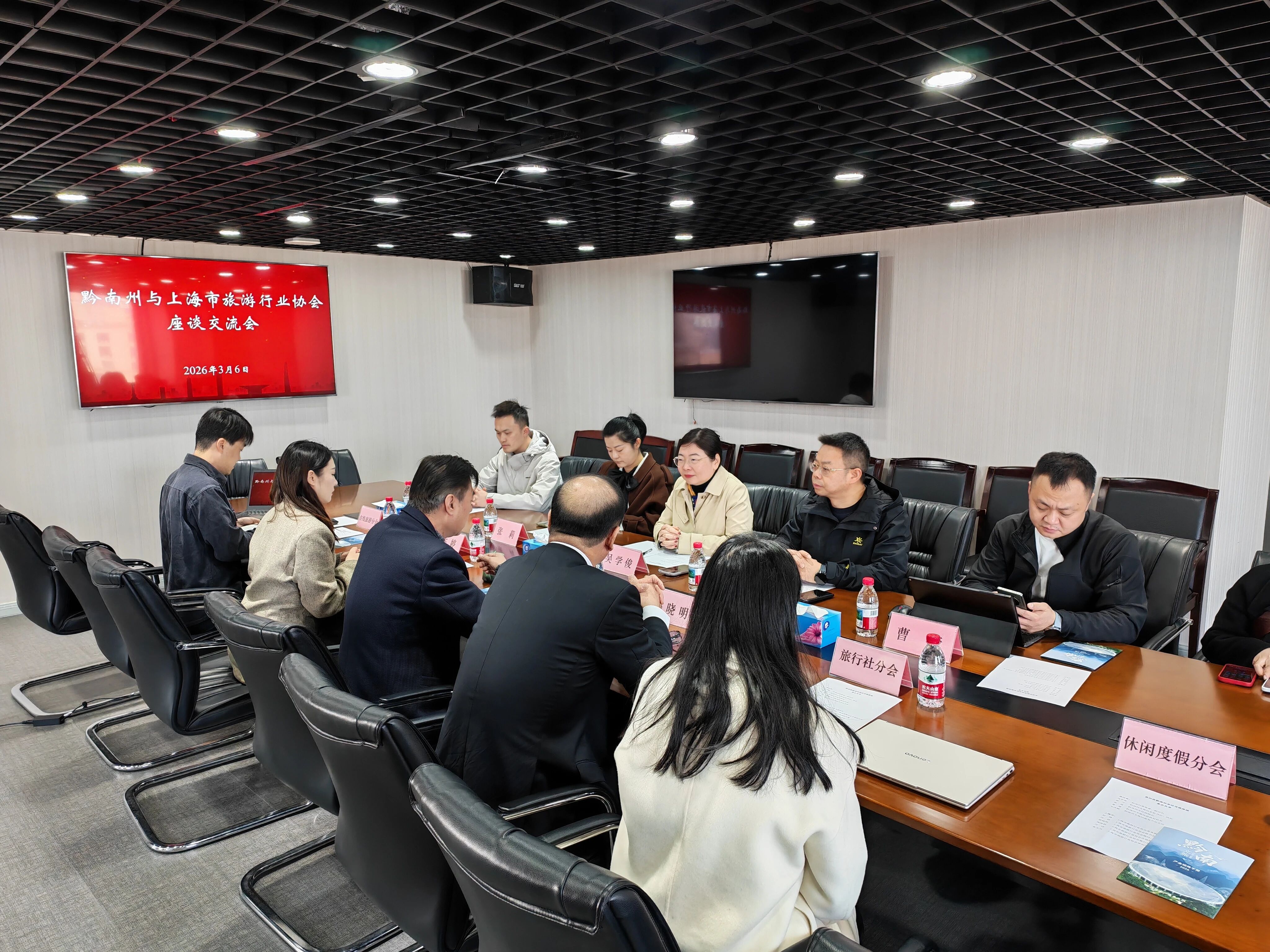 3月6日上午,贵州省黔南州州委常委、副州长吴学俊,黔南州文化广电和旅游局党组书记、局长杨宁一行到访上海市旅游行业协会。上海市旅游行业协会常务副会长赵锋,秘书长兼休闲度假分会专职副会长许婷,顾问邵晓明热情接待。在线旅游分会、旅行社分会相关负责人参加座谈。双方围绕深化沪黔文旅合作、推动黔南旅游市场拓展、加强资源对接与客源互送等方面展开深入交流。