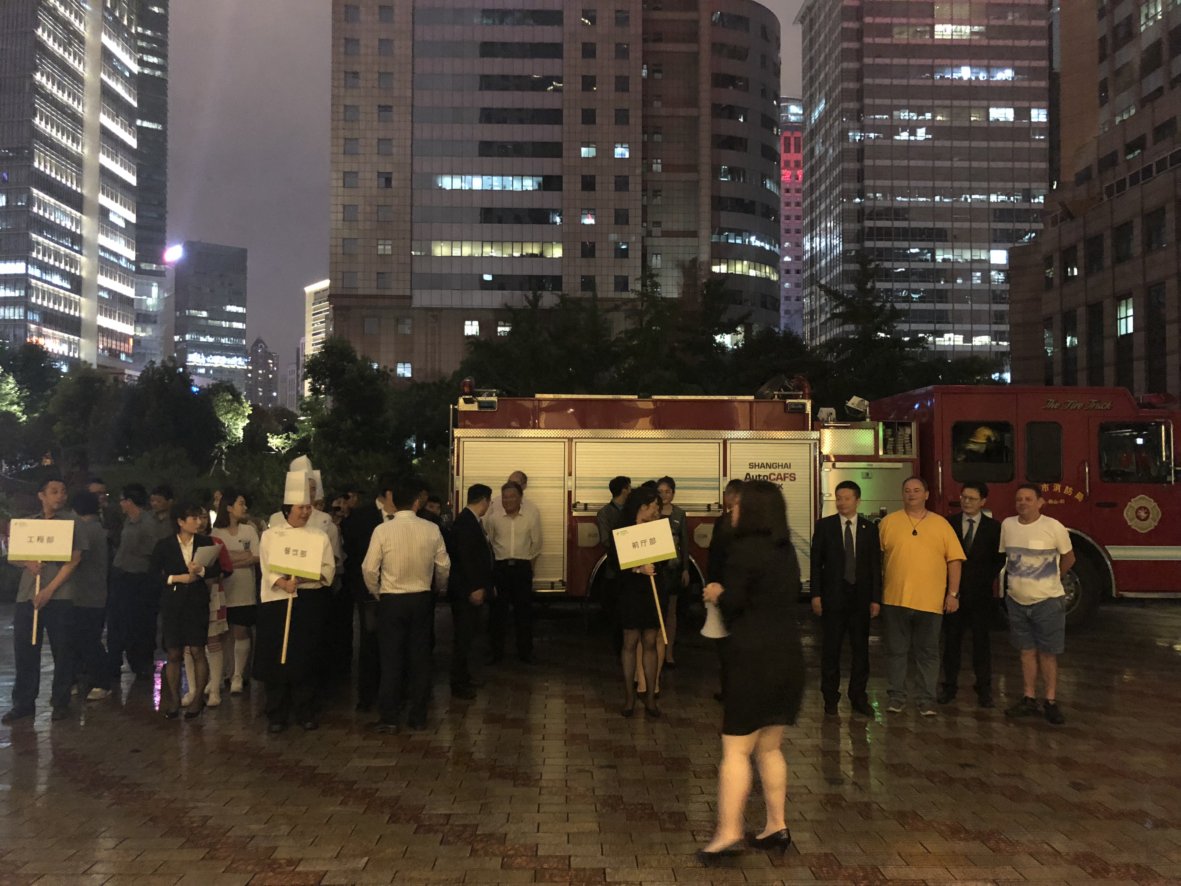 当晚7时30分,按照原定计划,浦东假日酒店内突然警铃大作,各部门迅速相应,按照既定流程,在现场指挥员引导下,迅速完成了安全疏散任务,整个过程有条不紊,且用时不到5分钟。